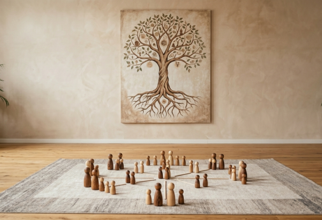 Terapia sistémica que revela y sana conflictos familiares inconscientes, restaurando equilibrio emocional y relacional.