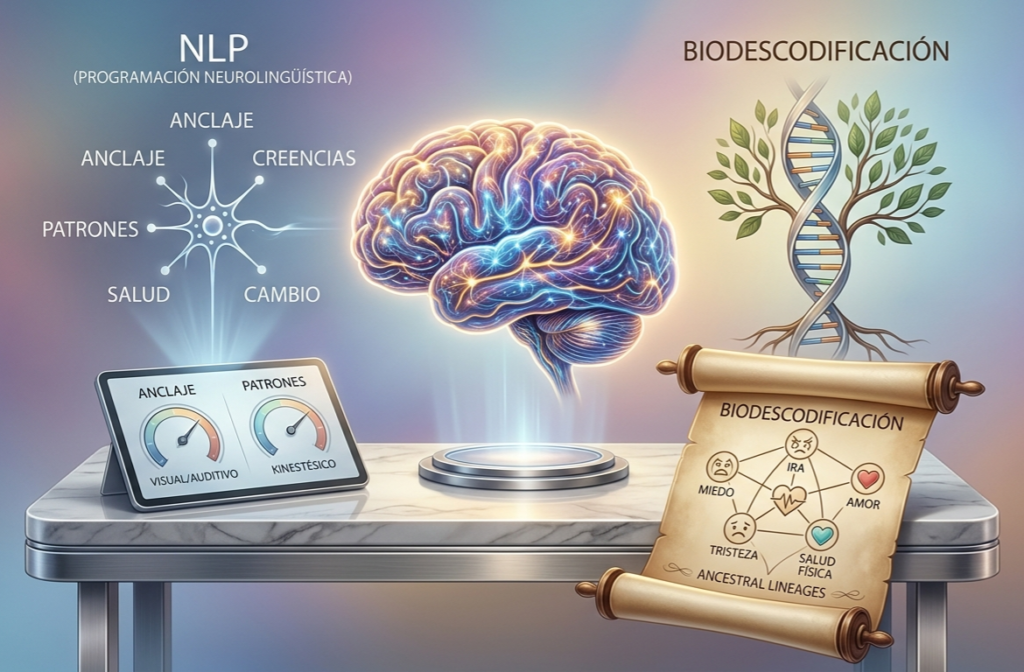 Regula distintas patologías emocionales desde la mirada de la programación neuro lingüística, ancestrología, biodescodificación, entre otras.