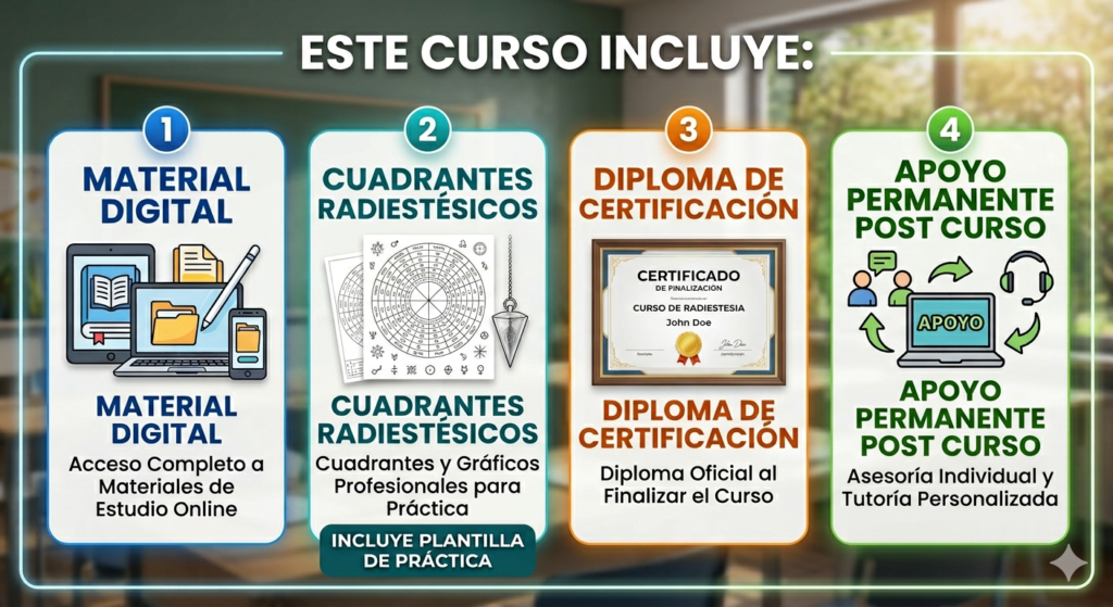 Aprende a utilizar el péndulo con fundamentos técnicos y aplicación práctica desde la primera clase. Formación profesional, 100% online, diseñada para desarrollar sensibilidad y precisión energética.